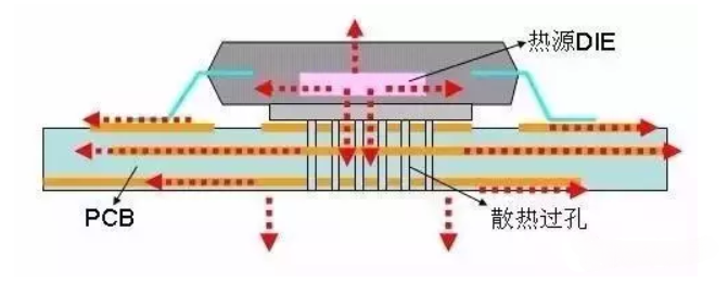 由于板材中的樹脂導(dǎo)熱性差,而銅箔線路和孔是熱的良導(dǎo)體,因此提高銅箔剩余率和增加導(dǎo)熱孔是散熱的主要手段。