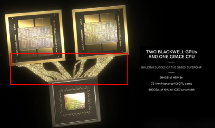 帶寬提升對信號損耗控制提出更高的要求,縮短傳輸距離成為關鍵。對于AI算力芯片來說,其關鍵的性能除了GPU計算浮點數之外,同樣重要的還包括GPU矩陣計算單元互連時的連接帶寬,這決定了在單位時間內系統整體運行的效率,因此芯片互連帶寬也成為了算力硬件中關鍵的性能指標。作為AI算力領域的絕對龍頭,英偉達也開發了自己的互連協議NVLINK,并且通過不斷提升芯片之間互連的帶寬來打造更高效的算力層系統,根據官網顯示的信息我們看到,隨著GPU迭代互連帶寬也在逐漸提升,特別是到GB200這一新架構下,GPU之間互連帶寬已經提升到1800Gb/s、GPU與CPU之間互連帶寬從過去的PCIE協議提升到NVLINK C2C協議900GB/s的帶寬。