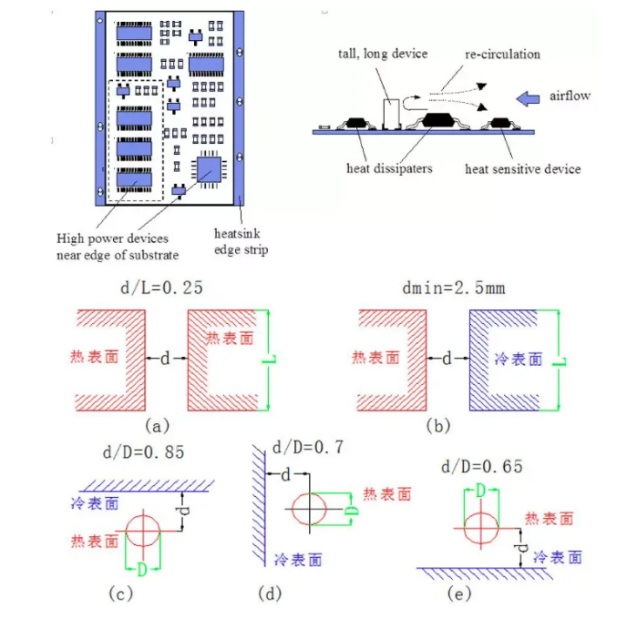 空氣流動時總是趨向于阻力小的地方流動,所以在印制電路板上配置器件時,要避免在某個區域留有較大的空域。整機中多塊印制電路板的配置也應注意同樣的問題。