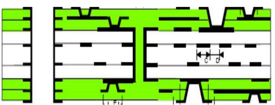 2.1.2 外觀控制要求:關(guān)鍵區(qū)域微帶線不允許出現(xiàn)凹坑劃傷類(lèi)缺陷,因?yàn)楦哳lPCB的線路傳送的不是電流,而是高頻電脈沖信號(hào),高頻導(dǎo)線上的凹坑、缺口、針孔等缺陷會(huì)影響 傳輸,任何這類(lèi)小缺陷都是不允許的。