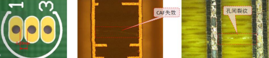 5G芯片要求PCB 孔間距更小,最小孔壁間距達(dá) 0.20mm,最小孔徑 0.15mm,如此高密 布局對(duì)CCL 材料和 PCB 加工工藝都帶來(lái)巨大挑戰(zhàn),如 CAF 問(wèn)題,受熱孔間裂紋問(wèn)題等。