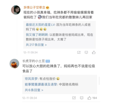 有網友回憶,小時候都是偷偷摸摸背著家長吃辣條,等味兒散完了才敢回家。