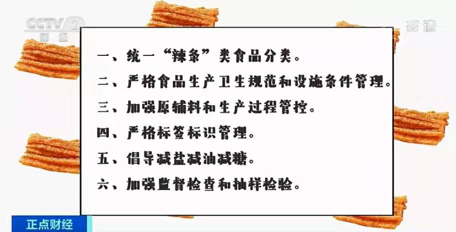 公告第一條就明確要求,統一“辣條”類食品分類:各地市場監管部門對“辣條”類食品統一按照“方便食品(調味面制品)”生產許可類別進行管理,凡與此不一致的,應當于2020年1月31日前調整到位。