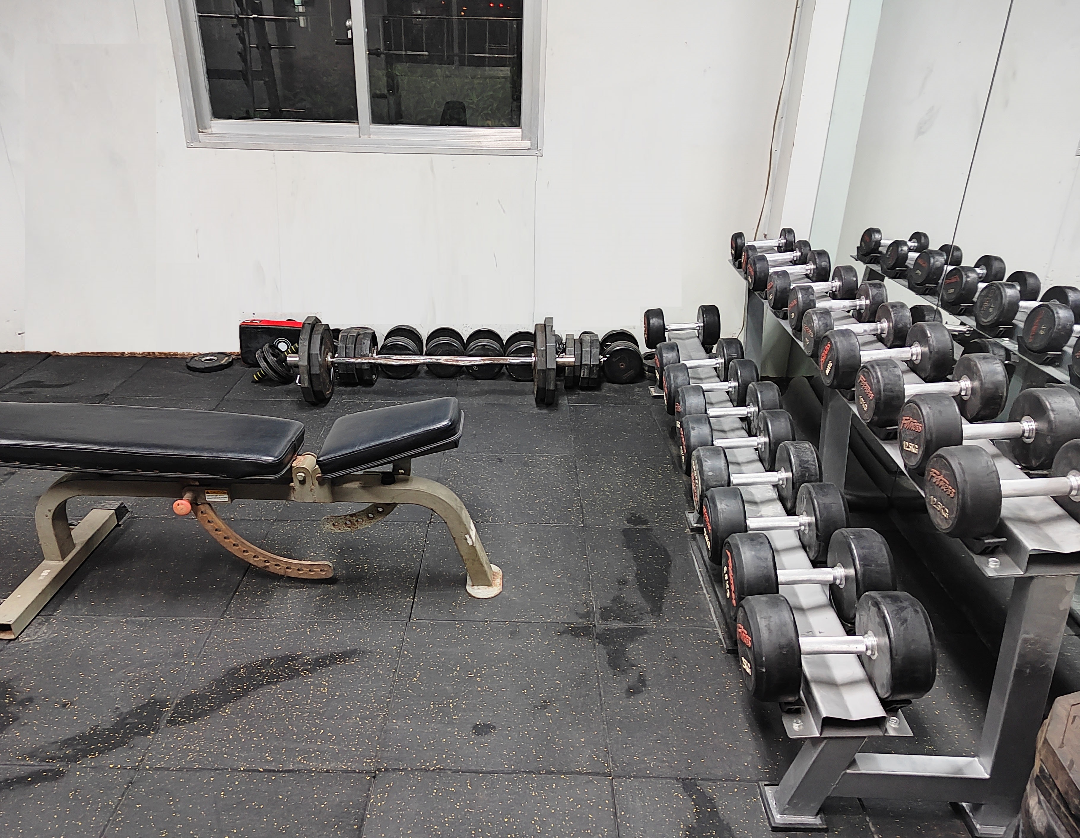 一排排的啞鈴,想練肌肉的可以來試試