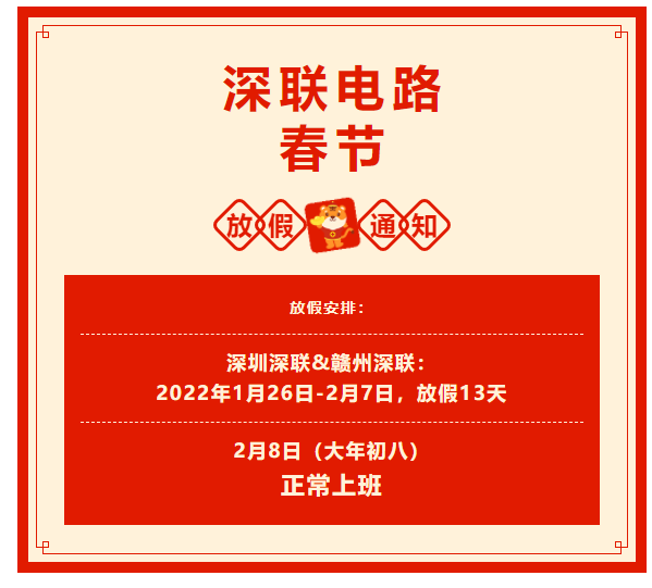 深聯(lián)電路柔性電路板廠2022年春節(jié)放假安排立馬就給大家放出來(lái)了!
