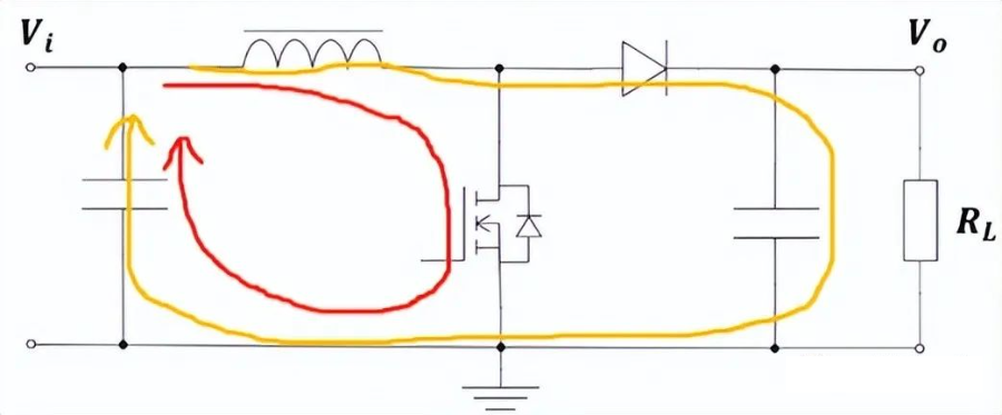 下面是Boost升壓DC/DC電路電流環(huán)路的情況,來聊聊電感底部敷銅對電源設(shè)計的影響。