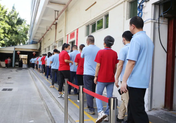 同事們已經(jīng)排好隊(duì)準(zhǔn)備享受美食了