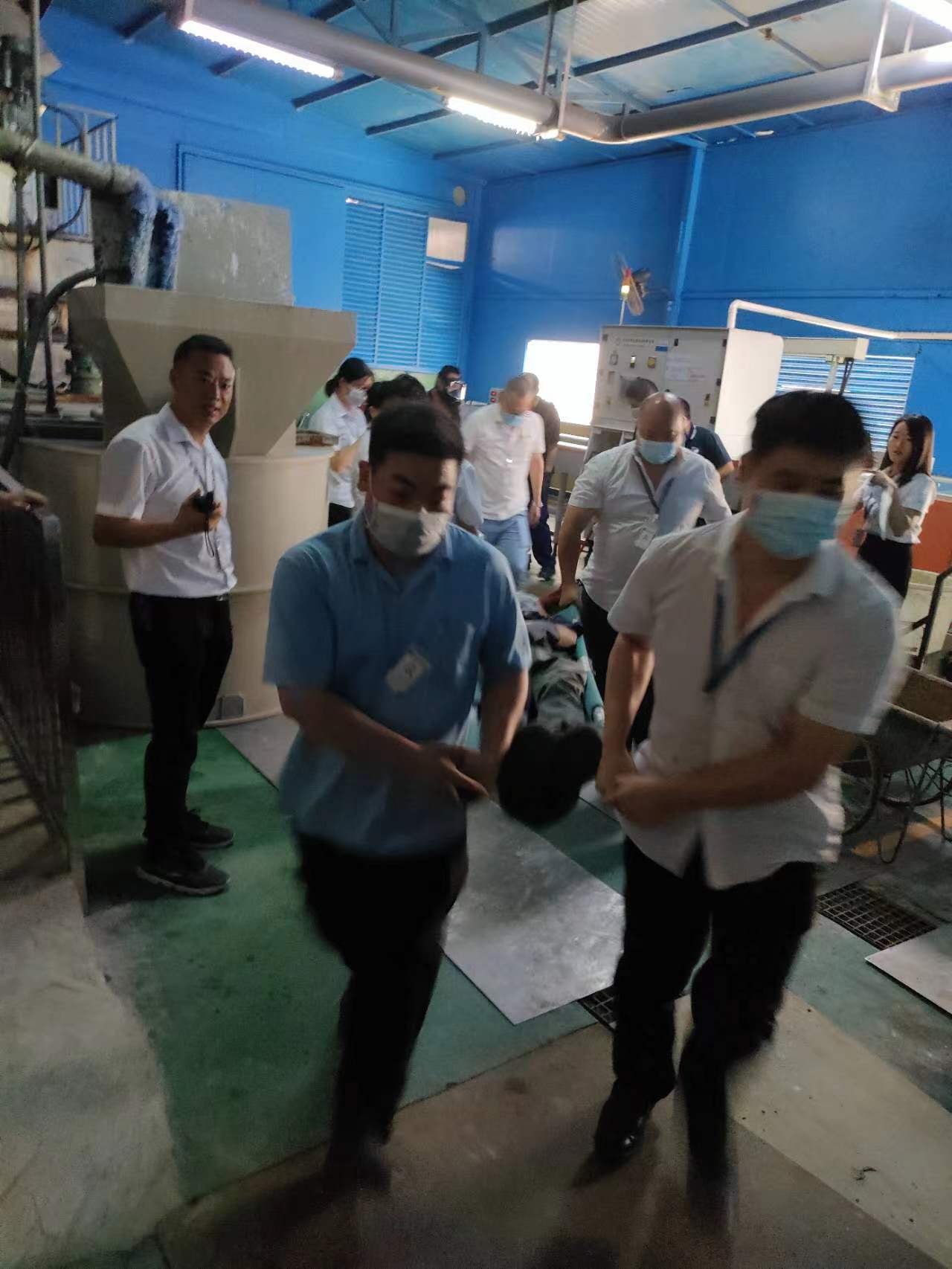 首先,安全警戒疏散組拉響警鈴,立即疏散事故現場人員,拉上警戒線進行現場警戒,控制廠區安全通道暢通。