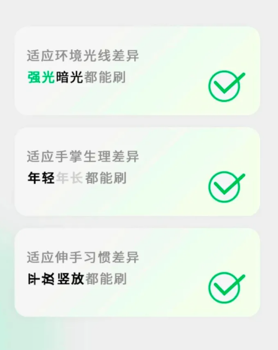 不過,長期來看,王鵬認為,刷掌支付有一定優勢。從識別率看,當前人臉支付的識別率并不高。刷掌應用的是“掌紋+掌靜脈”識別技術,比刷臉更安全、更方便,對老年人更“友好”。