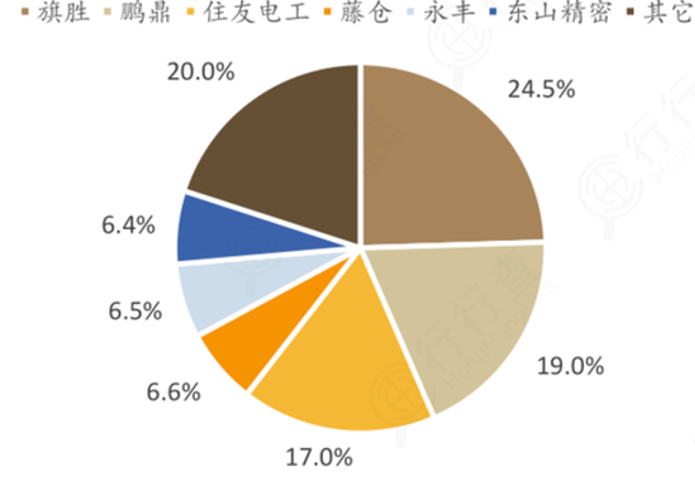 日本旗勝和鵬鼎控股為全球Top2 FPC供應(yīng)商,其份額領(lǐng)先其他廠商較多。