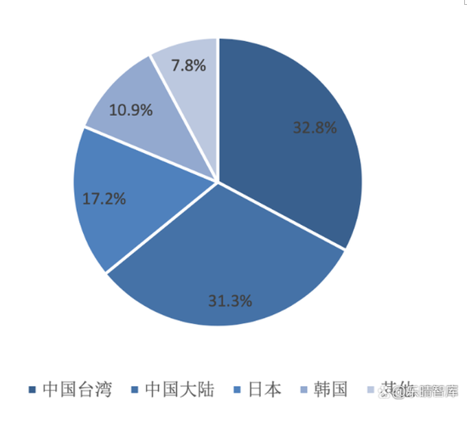 在 2021 年的PCB 全球產(chǎn)值分布中,中國臺灣以 32.8%的占比位居第一,中國大陸的占比上升至 31.3%,排名第二,日本的產(chǎn)值占比下降至 17.2%,降幅超過 50%。