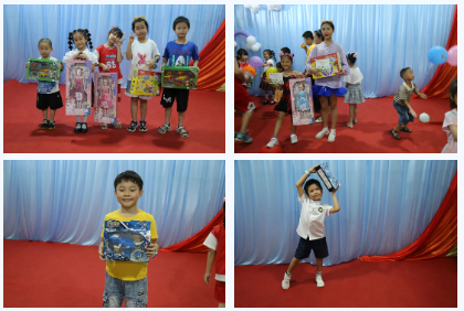 小朋友帶著勝利的獎品