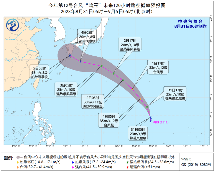 今年第12號臺風(fēng)“鴻雁”昨日(30日)晚間生成,今晨5時其中心位于美國關(guān)島偏東方向約1030公里的西北太平洋洋面上,中心附近最大風(fēng)力有9級(23米/秒,熱帶風(fēng)暴級)。
