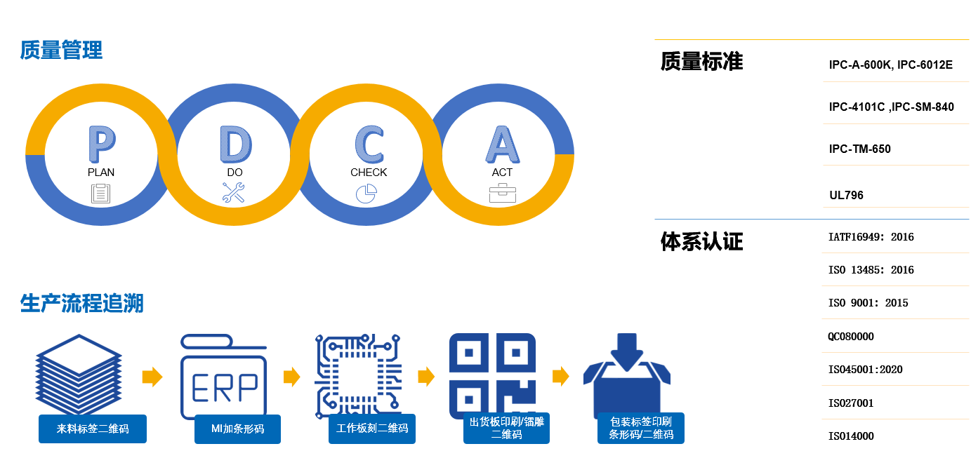 深聯電路與世界一流的設備及材料商達成戰略合作伙伴,建立MES系統,增加產品可追溯性,全流程監控產品質量;潛心專研創新技術與精湛的工藝能力,不斷打磨,結合高品質的精益生產管理、研發制造能力以及先進創新的PCB核心技術等優勢,造就高品質好板。
