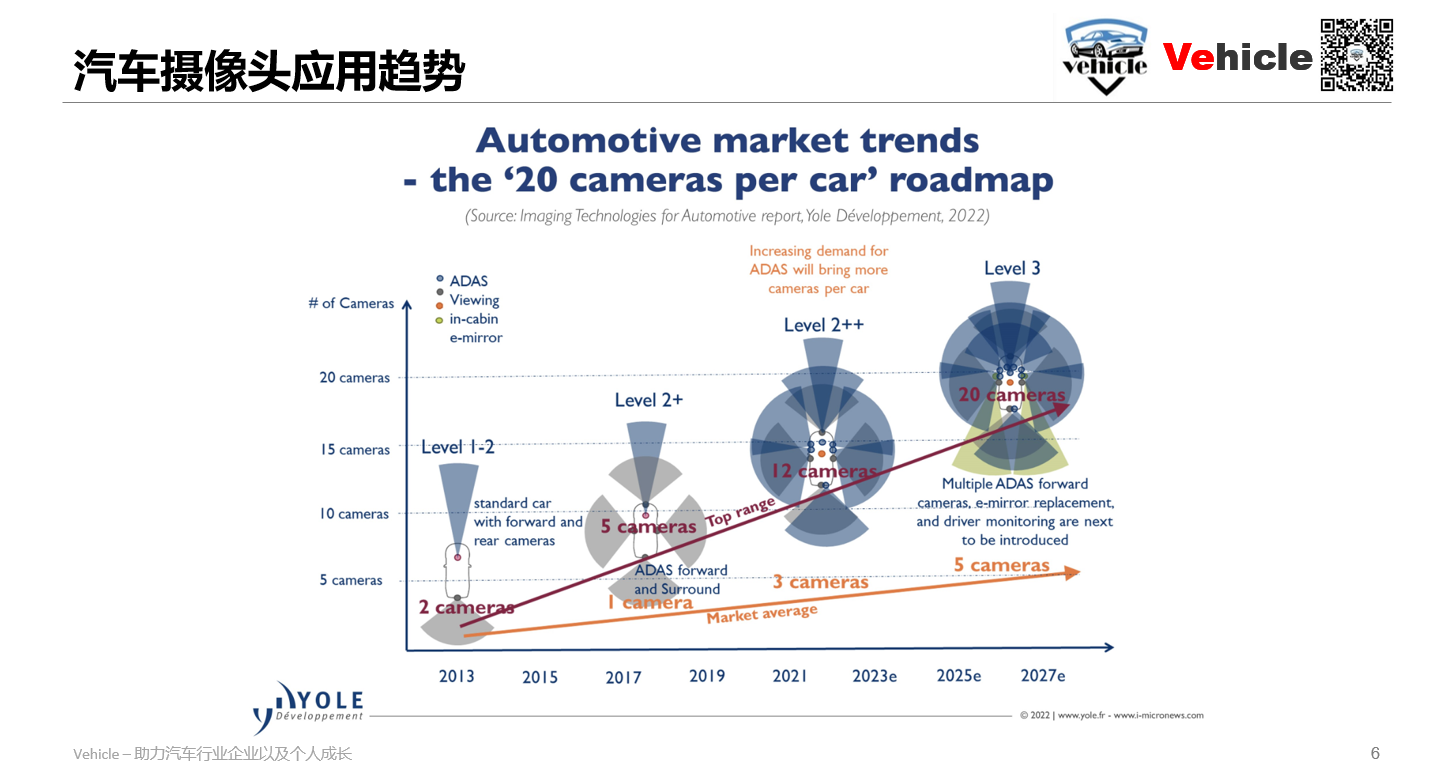 所以Yole的數(shù)據(jù)比較真實,未來單車的攝像頭數(shù)據(jù)都是十幾個。這個在手機(jī)消費電子行業(yè)任憑你浴霸甚至整個手機(jī)都放攝像頭也比不了。