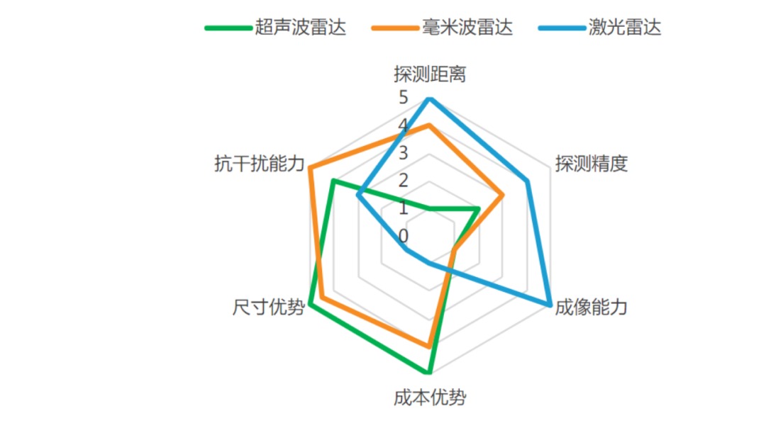 三種汽車雷達各有優劣,超聲波雷達的優勢是成本低廉,激光雷達的優勢是精度高,毫米波雷達的優勢是抗干擾能力強。未來的技術趨勢是:多傳感器融合