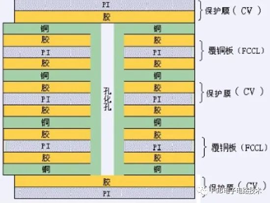 傳統的剛撓板是由剛性和柔性基板有選擇地層壓在一起的組成的。結構緊密,以金屬化孔形成導電連接。考慮到可靠性和價格因素,生產廠應試圖保持盡可能少的層數。
