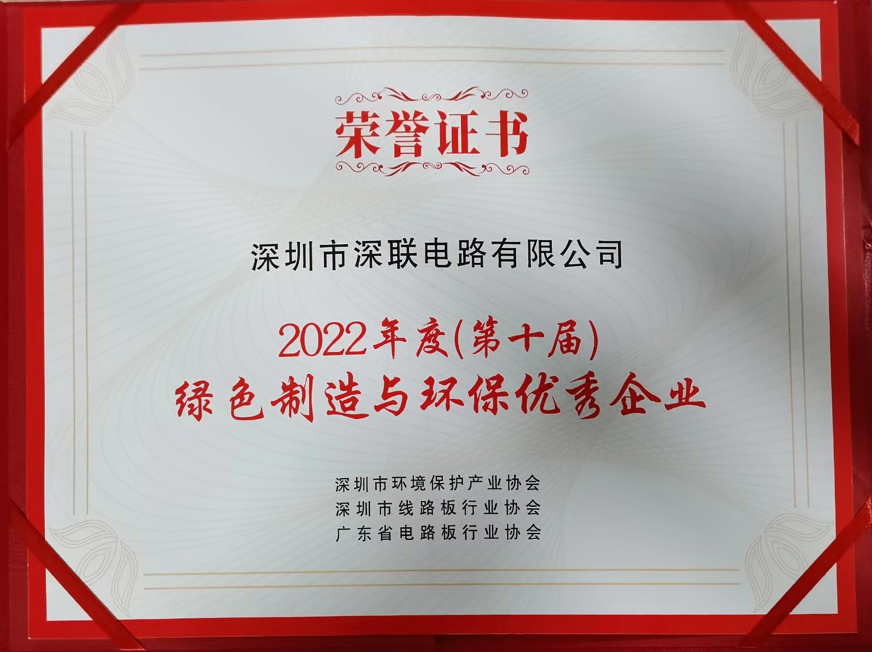 喜訊! 深聯電路PCB廠連續9年榮獲綠色制造與環保優秀企業!