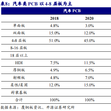 汽車類PCB以4-8層板為主,產品可靠性及穩定性要求高,價格穩定、波動小,產品認證周期長。