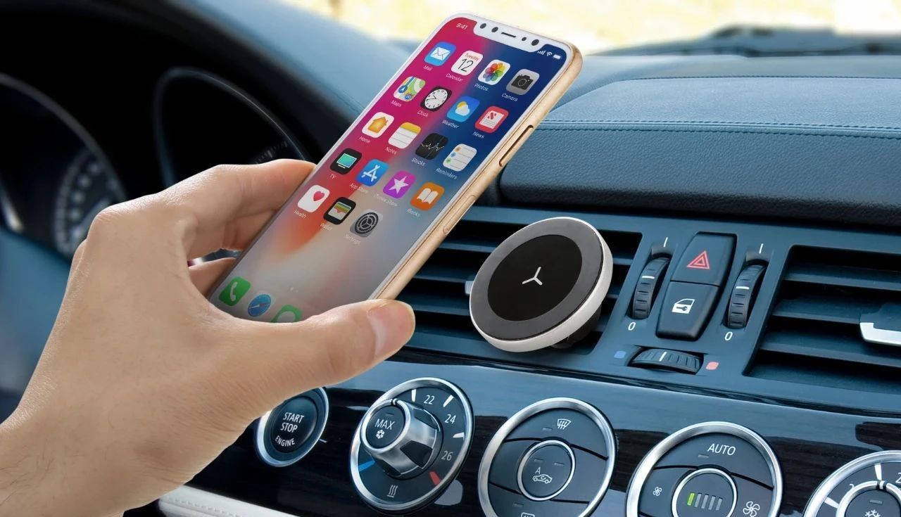 如圖,手機(jī)無線充電的常用場景:磁吸式車載無線充。