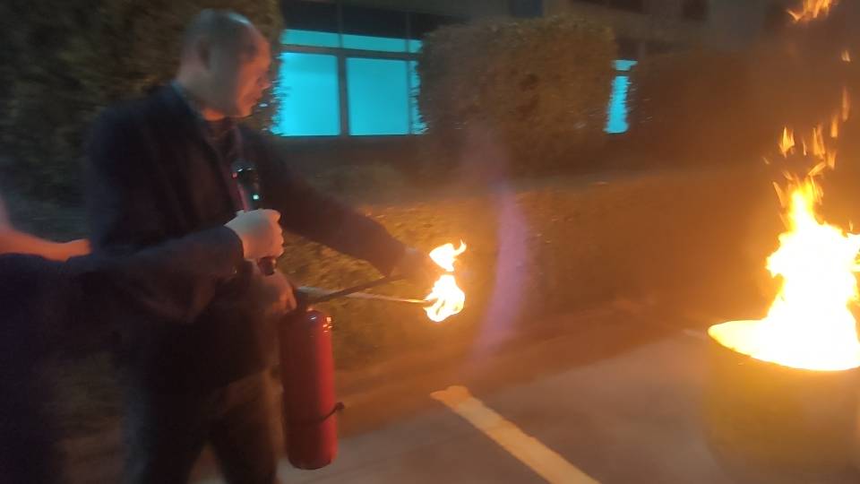 實戰演練結束后,負責安全的李主任對參練人員進行了消防知識培訓,講解了滅火器“一提、二拔、三瞄、四壓”的使用四步法,幫助大家進一步掌握消防設施設備實操技能,提升火災事故預處理、自救、互救能力。