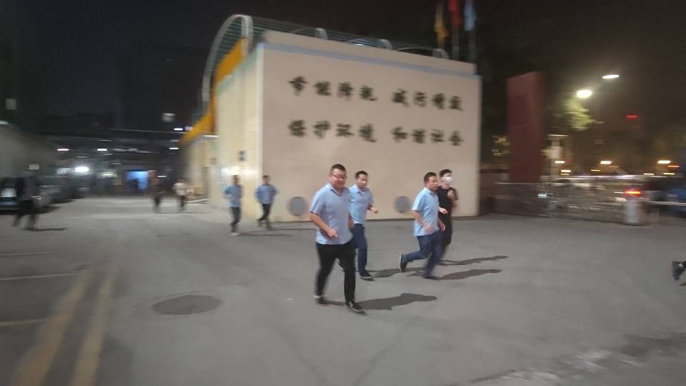 各部門員工在聽到警報響起后,迅速往逃生出口逃跑,并到指定地點集合。