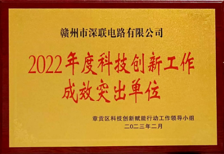 再傳喜訊!深聯電路榮獲2022年度章貢區科技創新工作成效突出單位稱號!
