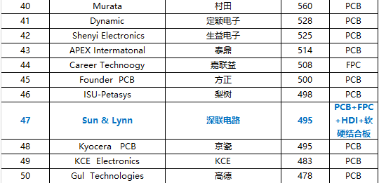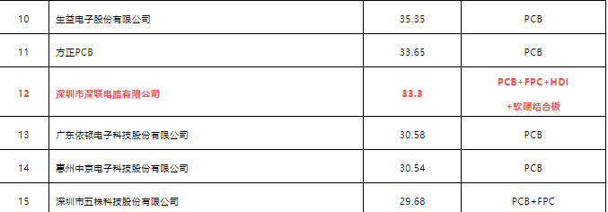 2022年度中國電路(CPCA)百強排行深聯電路排行12名!