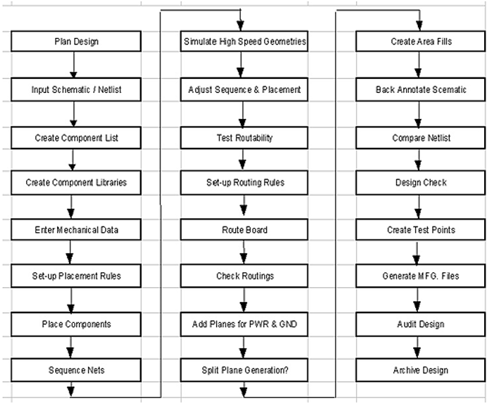 HDI PCB板設(shè)計(jì)過(guò)程如下所示。HDI的布線效率取決于疊層、過(guò)孔架構(gòu)、零件放置、BGA扇出和設(shè)計(jì)規(guī)則。HDI布局規(guī)劃中的最重要部分是考慮布線寬度、過(guò)孔尺寸以及BGA元件的布置/迂回布線。