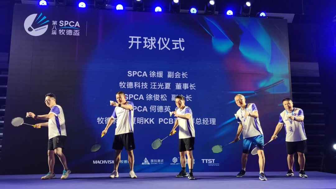 隨著開球儀式的開始,SPCA 副會長徐緩、GPCA 副會長徐俊松(深聯電路董事會主席徐俊松)、MPCA 會長何德英、牧德科技董事長汪光夏、牧德科技 PCB 事業群總經理夏明 KK 一同為羽毛球賽開球。標志著比賽正式拉開帷幕。