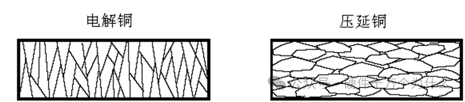 采用電鍍方式形成,其銅微粒結(jié)晶狀態(tài)為垂直針狀,易在蝕刻時形成垂直的線條邊緣,有利于精細線路的制作;但在彎曲半徑小于5mm或動態(tài)撓曲時,針狀結(jié)構(gòu)易發(fā)生斷裂。