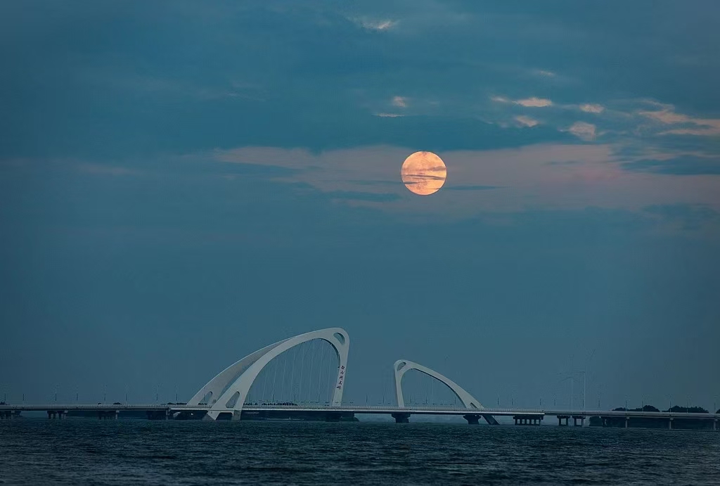 一輪巨大的圓月緩緩升起