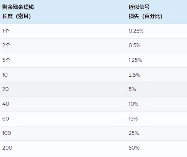 與剩余存根長度相對應的信號損失