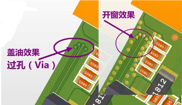 過孔(via) :只是起電氣導(dǎo)通作用不用插器件焊接,其表面可以做開窗(焊盤裸露)、蓋油或者塞油。