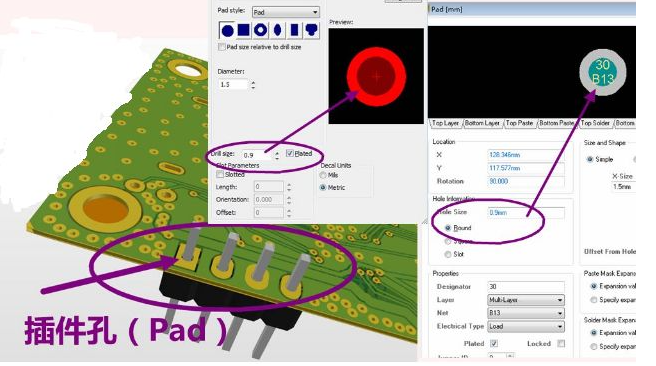 插件孔(Pad孔):需要插器件焊接的引腳孔,焊盤表面必須裸露出來。