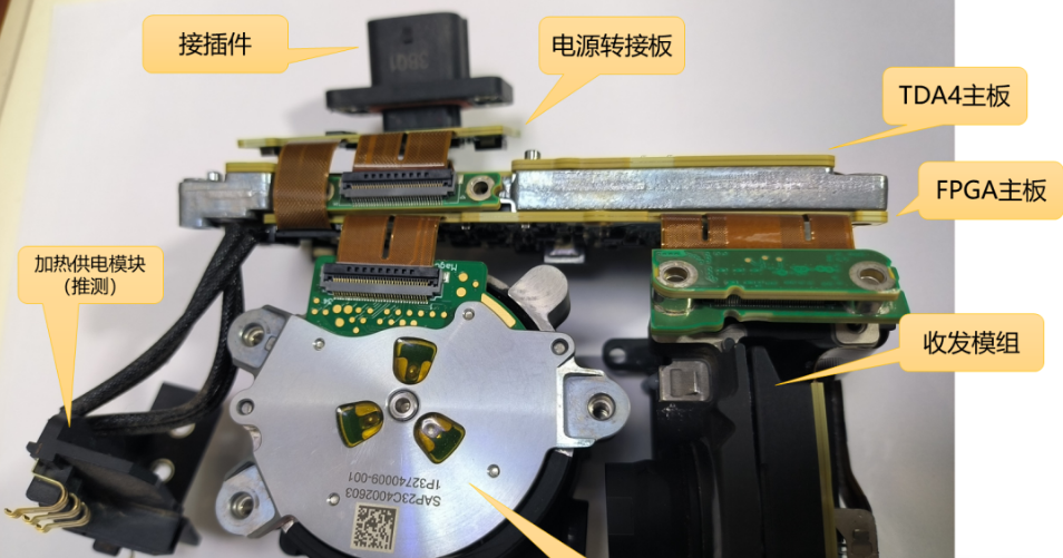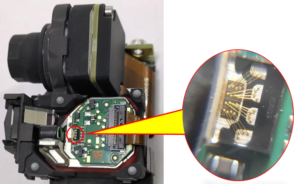 接收器使用的是索尼SPAD深度傳感器,同樣使用了軟硬結(jié)合板的方式,接收傳感器同樣使用bonding工藝與PCB進(jìn)行連接,并封膠處理。