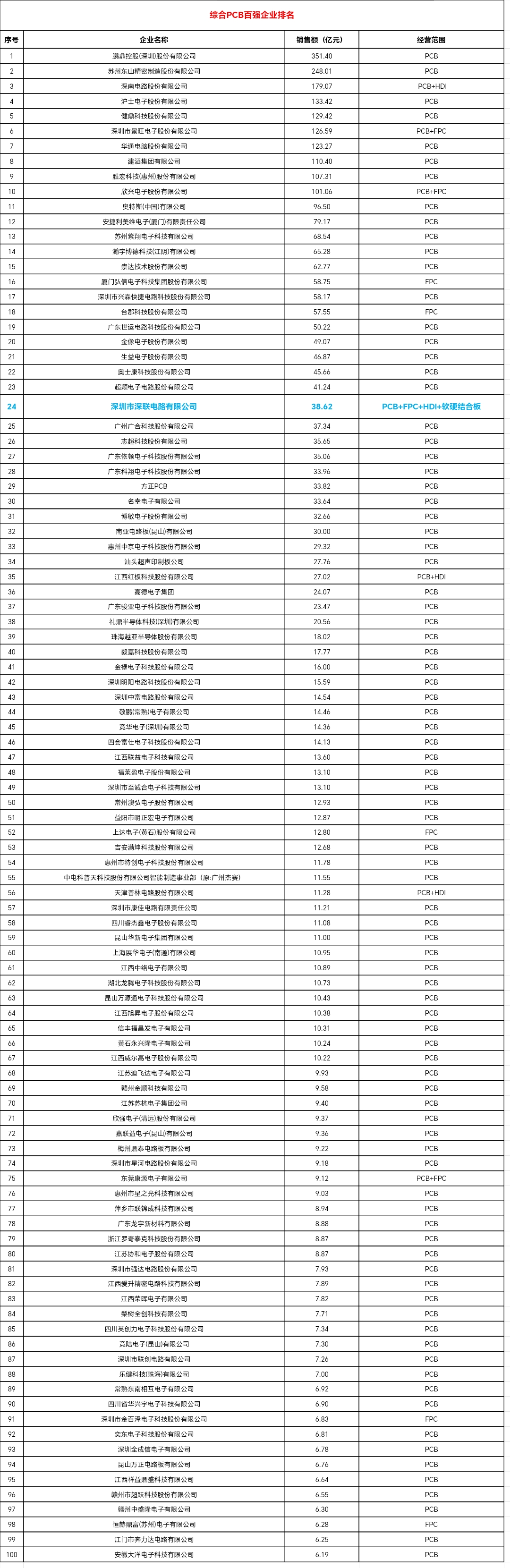 重磅!2024年PCB企業營收百強排行榜新鮮出爐啦!(附排行名錄)