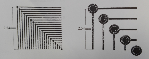 圖3.1是一般FR4電路板中300um的鉆孔栓孔(Drilled Via)和增層電路板中100um栓孔的孔徑比較。由于訊號線的沿X方向和Y方向配置。所以在X和Y方向導線交點的位置必須配置栓孔以便上下層線路之間可以導通。栓孔配置呈斜線方向排列,這種斜線排列方式可以連到最多的栓孔數目。一般高密度電路板的密度指標是以栓孔密度來表示,每英寸見方面積中所能容納的栓孔數碼樣以VPSG(Vias Per Square Grid)的單位來表示,圖3.1中的FR4電路板的栓孔密度只有4VPSG而增層電路板的栓孔密度則高達20VPSG。除了增層線路板平面線路密度是一般的FR4印刷線路板的3倍之外,由于增層線路板的絕緣層厚度只有40um也比FR4電路板薄,因此Z方向密度也是FR4電路板的2倍,所以整個增層電路板的線路密度可以超過一般FR4電路板的10倍以上。由于增層線路板的線路密度還高于FR4印刷線路板,因此如果無法確保制程所需的精密度時,增層電路板的生產良率便會大幅下降。