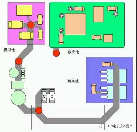 如果不選擇使用整個平面的作為公共的地線,比如模塊本身有兩個地線的時候,就需要進行對地平面進行分割,這往往與電源平面有相互作用。注意以下的幾點原則: