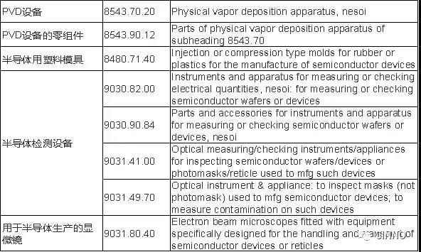 半導體設備:清單一中的征稅項目以PVD設備、檢測設備為主,有較多項目不在加稅范圍內,但清單二中做了增補