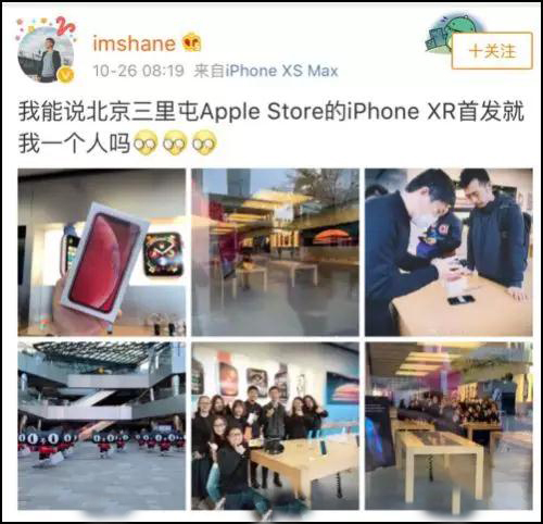 據財經網26日下午報道,iPhone XR正式開賣,杭州、北京等國內首發現場不僅沒排隊,場面還略顯尷尬。北京三里屯蘋果店的第一位顧客@imshane 發文稱,20多名店員舉辦的歡迎儀式就他一位顧客,感覺像走紅毯,有點受寵若驚,而開始跟他一起等待的黃牛都離開了。