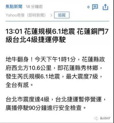 HDI廠之臺灣花蓮發生6.7級地震,閩浙滬震感明顯!