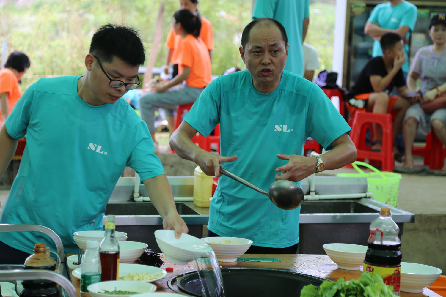 在大廚們的組織下,大伙兒開始熱火朝天的干起來,洗菜刷鍋、切菜、準備配料佐料、生火……一氣呵成。