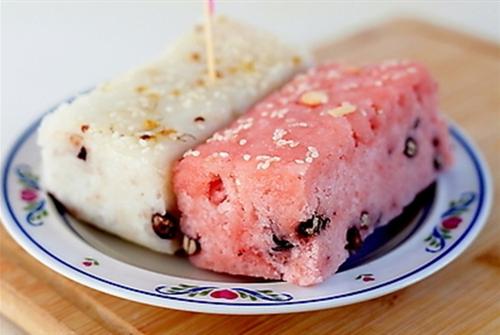 重陽糕亦稱“花糕”,漢族重陽節食品。流行于全國大部分地區。蒸重陽糕方法與蒸年糕相同,不過蒸糕要小一點,糕要薄一點。以米粉、豆粉等為原料,發酵,更點綴以棗、栗、杏仁等果馕、加糖蒸制而成。為了美觀中吃,人們把重陽糕制成五顏六色,還要在糕面上灑上一些木犀花(故重陽糕又叫桂花糕),這樣制成的重陽糕,香甜可口。