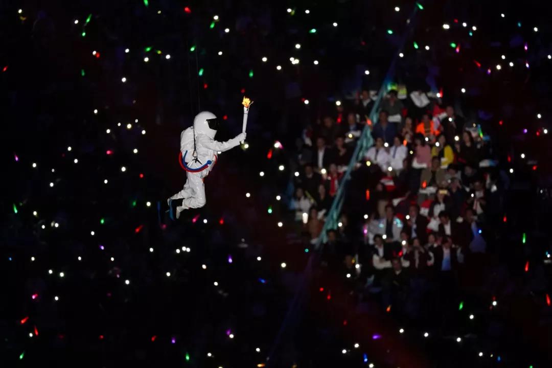 劉玉棟手舉火炬,登上火炬臺(tái)