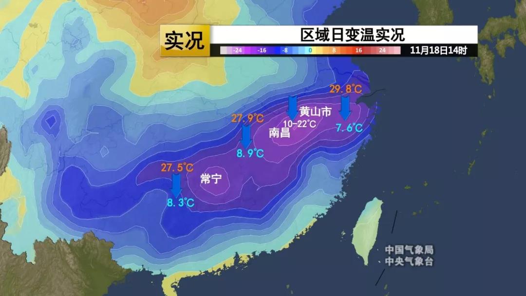 自北向南降溫明顯