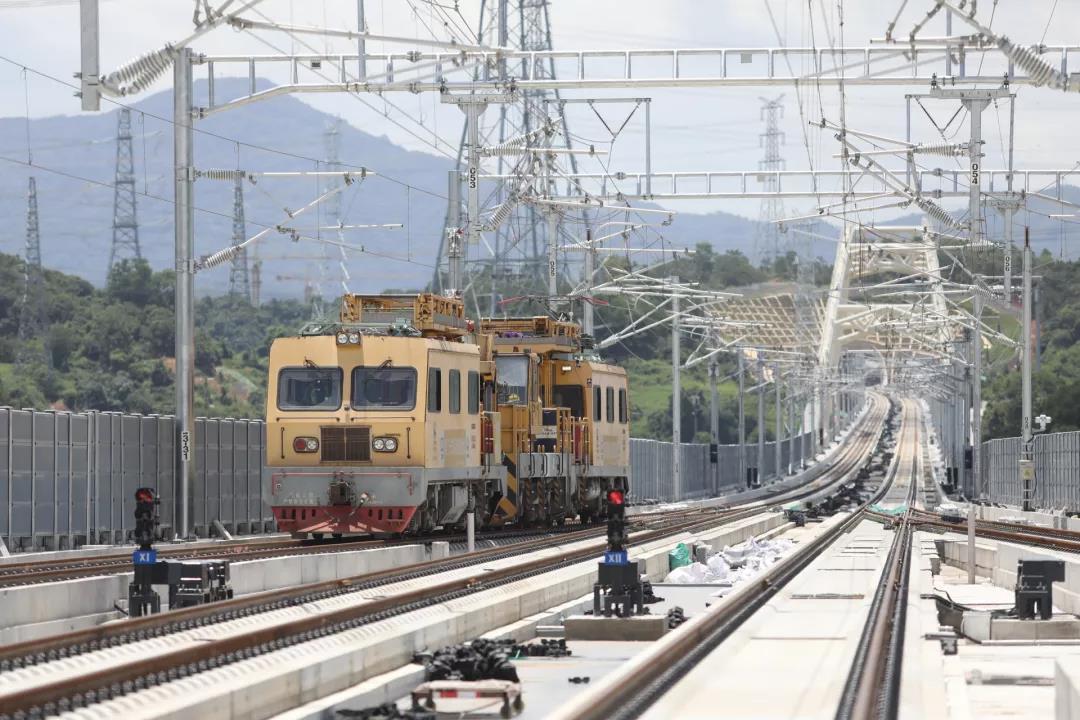 近日,一列由兩輛接觸網作業車組成的檢測車組緩緩駛入贛深高鐵光明城站。這就是贛深高鐵正在進行的冷滑試驗。