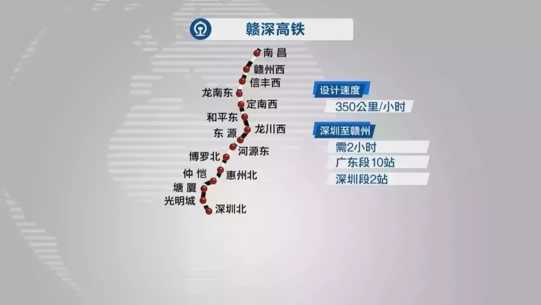 贛深鐵路縱貫江西、廣東兩省沿線途經贛州、河源、惠州、東莞、深圳等地市