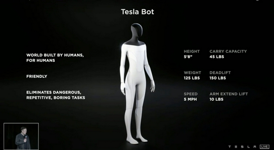 在走出一個穿著特斯拉機器人制服的人后,馬斯克說:“特斯拉機器人將是真的”。馬斯克詳細介紹了該機器人將能夠完成的一些任務,包括跑雜貨店、撿拾家庭物品和其他日常指令。