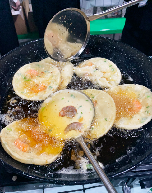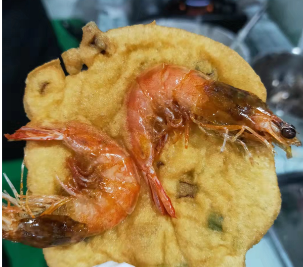 把面粉和蝦放在磨具里面了,炸至金黃,好吃的蝦餅就新鮮出爐了~